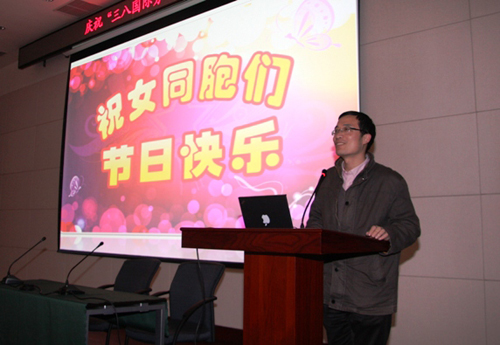 会上,胡金波代表所党委和工会带来了对有机所全体妇女同胞节日的问候!他说,有机所妇女共有三百多人,占所里职工总数的2/5,女同胞在科研工作中所表现出的勤奋和努力,大家有目共睹;有机所有声有色的妇女工作,对所的中心工作起到了积极的推动作用。祝愿全所妇女节日快乐、身体健康、万事如意!