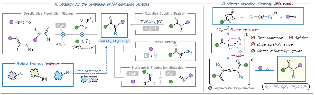 A Modular Approach to N-Fluoroalkyl Amides via Nitrene Insertion Into Fluoroalkylcopper(I).Angew. Chem. Int. Ed.2026, doi: 10.1002/anie.1753273.