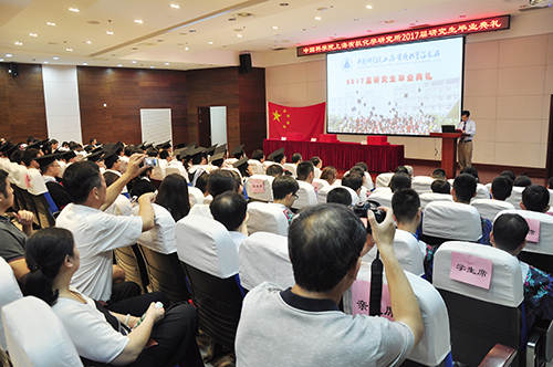 上海有机所2017届研究生毕业典礼于6月21日上午在君谋楼报告厅隆重举行,党委副书记(主持工作)胡金波、副所长马大为、副所长俞飚、部分研究生导师,100余名毕业生及其家属共同见证这庄严的时刻。毕业典礼由马大为主持。