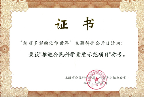 近日,上海市公民科学素质工作领导小组办公室公布了第二批“推进公民科学素质示范单位”和“推进公民科学素质示范项目”名单(沪科协[2015]71号)。 中国科学院上海有机化学研究所“绚丽多彩的化学世界”主题科普公开日活动获批“推进公民科学素质示范项目”。