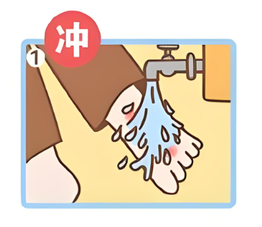 第一时间打开水龙头,用流动的冷水(15~25℃)冲洗伤口,至少15到30分钟,尽量冲到离开水不疼为止。目的是降温,防止热量继续往里钻。