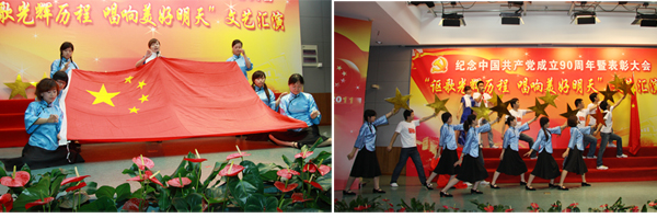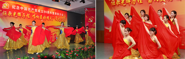 2011年6月28日,为纪念伟大的中国共产党成立90周年,上海有机所隆重举行 “讴歌光辉历程,唱响美好明天”纪念建党90周年文艺汇演。所领导班子成员、各党支部书记、民主党派代表、工青妇学群众团体负责人以及全所300多名党员代表参加了文艺汇演。