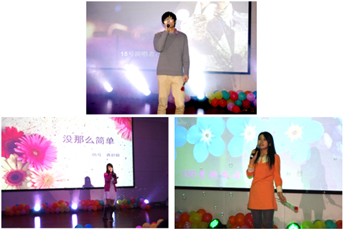 本次比赛共吸引了二十二位选手参赛,他们唱风迥异,个性凸显,深情热烈,赢得观众一次次的掌声和呐喊,把晚会推向一个又一个的高潮,尽显出了有机所学子的生机与活力。其中吴文挺声音浑厚、富有磁性,散发出一种渗透到灵魂深处的震撼,一首《rolling in thedeep》赢得了在场观众的阵阵掌声。吴浩和徐人奇深情演绎,声音打动人心。杜小勇感情奔放热烈。演唱中走下台与观众互动,强烈的节奏和有力的唱腔让现场沸腾。刘畅靓丽的外形和动听的嗓音令大家眼前一亮。张翔台风自然,以一种轻松的方式演绎出高超的歌唱艺术。开场视频中单口相声表演者李志鹏更是以一首经典歌曲《敢问路在何方》震撼全场。比赛过程中,还穿插了有趣的小游戏,嘉宾表演,现场抽奖等环节,使比赛更加妙趣横生,轻松有趣。