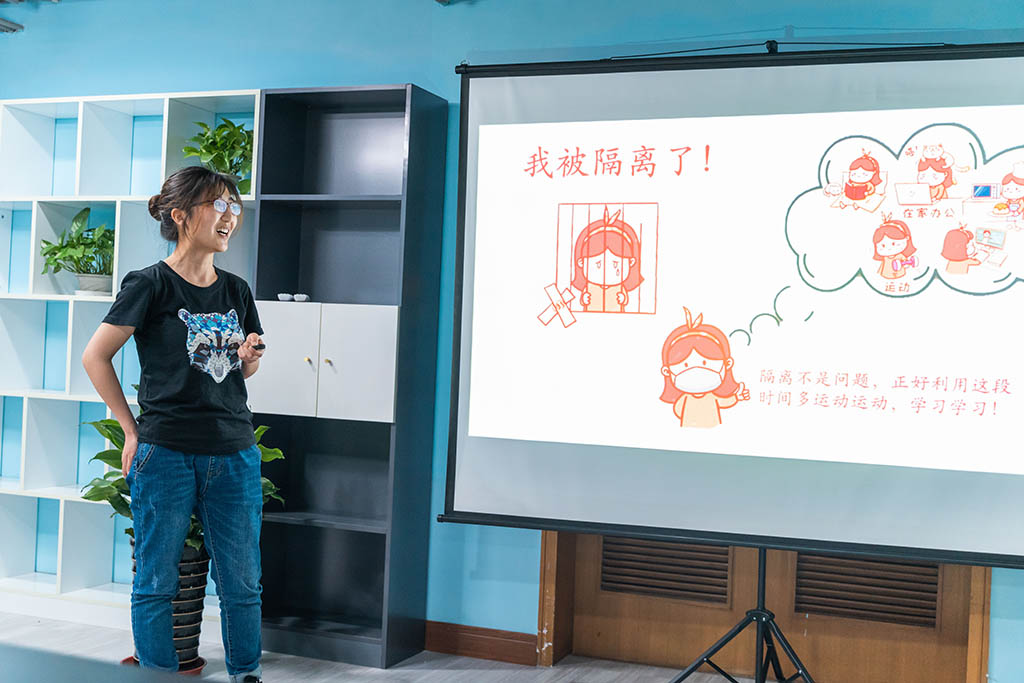 中科院有机功能分子合成与组装化学重点实验室的代梦露同学,她以《青春战役——流动的“马甲红”日记》为题,分享了在武汉疫情防控“志愿服务关爱行动”中的志愿服务经历与感受。中科院能量调控材料重点实验室的朱萌同志分享了积极参与抗新冠病毒的药物研发,攻坚克难的奋斗经历。金属有机化学国家重点实验室的赵泽昊同志,分享了争分夺秒,科技攻关熔喷料脱VOC技术的难忘经历。中科院有机氟化学重点实验室马天成同志,分享了利用课题组发展的高通量合成成药物性化合物库,助力抗新冠病毒药物筛选的故事。