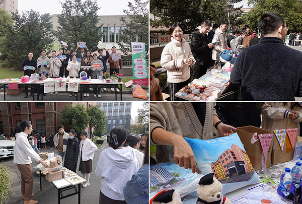 在爱心义卖区,志愿者摆摊设点为过往的师生提供琳琅满目的公益物资,包括文创产品、手工创作、绿植、生活物品和学习用品等,满怀爱心的师生络绎不绝。为了筹备活动物资,上海有机所志愿者们除了精心制作了文创周边产品,还在所内发布了爱心捐物通知,收获了众多捐赠物品。同时“悦动手作坊”的参与同学也爱心奉献了纯手工打造串珠作品。每一件物品都承载了满满的爱心和真挚的关怀,公益集市募集的爱心款将用于社区街道公益事业。