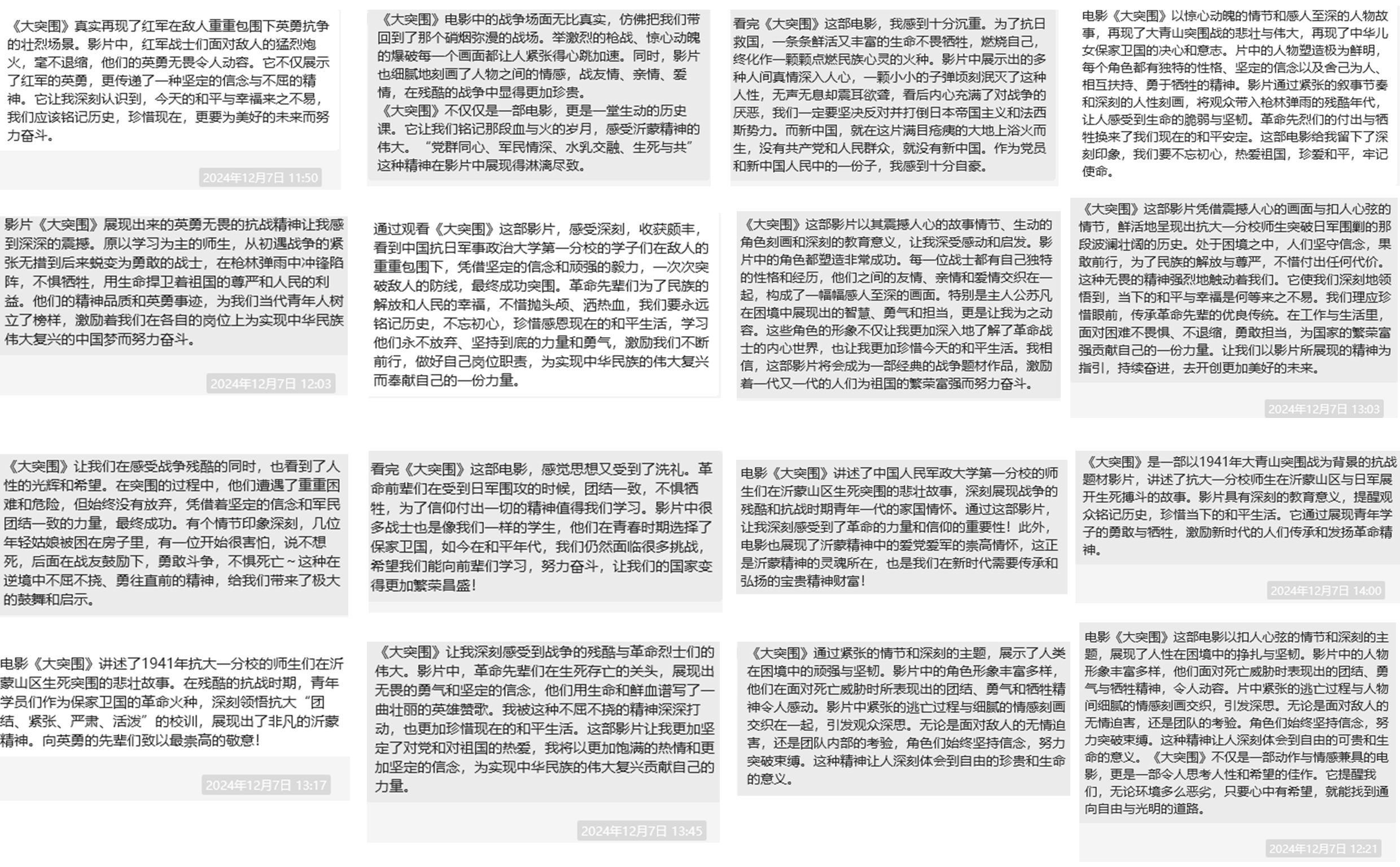 12月07日周六早上,全体支部党员响应号召,利用周末休息时间,集中观看爱国主义红色电影党课《大突围》。该电影讲述了中国抗日军事政治大学第一分校的师生们在沂蒙山区生死突围的悲壮故事。它以惊心动魄的情节和感人至深的人物故事,展现大青山突围战的悲壮与伟大,深刻展现抗战时期青年一代坚定的理想信念和家国情怀,也再现了中华儿女保家卫国的决心和意志。《大突围》不仅仅是一部电影,更是一堂生动的党史课,它让我们铭记那段血与火的岁月,感受“党群同心、军民情深、水乳交融、生死与共”沂蒙精神的伟大。