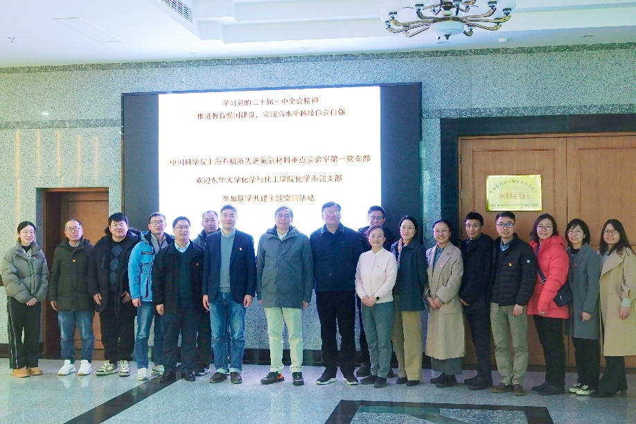 2024年12月27日,为强化国家战略科技力量使命担当,切实加快抢占科技制高点,以加强基层党组织建设,筑牢基层战斗堡垒为切入点,中国科学院上海有机化学研究所先进氟氮材料重点实验室第一党支部与东华大学化学与化工学院化学系党支部共同在上海有机所开展了“学习党的二十届三中全会精神,推进教育强国建设,实现高水平科技科技自立自强”联学共建主题党日活动。