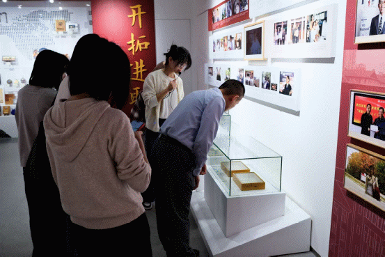 活动伊始,在上海师大党支部代表们的陪同下,有机所的党员师生们一起参观了设于上海师范大学徐汇校区校史馆。这座建筑面积650平方米的展厅空间系统呈现了学校70年办学历程,党员们在讲解员引导下,回顾了建校至今的峥嵘岁月,让党员们深刻体会到“厚德、博学、求是、笃行”校训背后的精神内核。