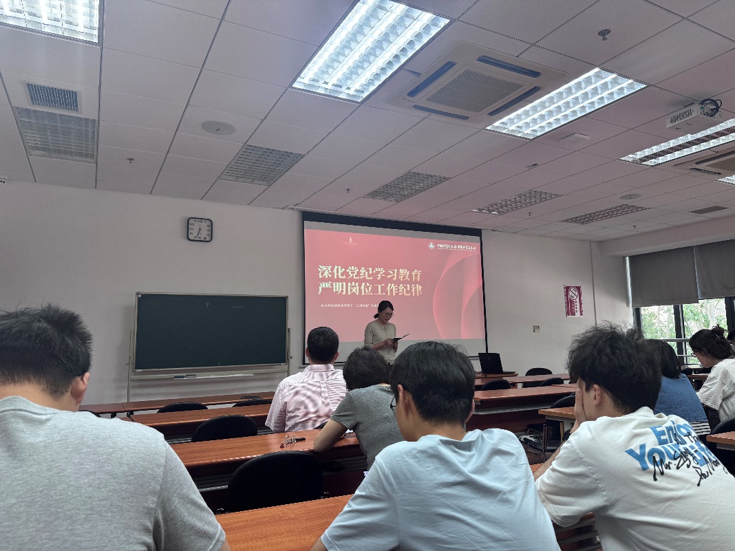 为深入贯彻落实党中央关于加强党纪学习教育的重要指示精神,进一步强化党员纪律意识,推动党建工作与科研业务深度融合,生命过程小分子调控全国重点实验室第一党支部定于2025年5月27日下午在君谋楼2第二教室开展本月主题党日活动。活动以“深化党纪学习教育”为主线,结合实验室安全管理工作实际,通过专题党课与主题研讨相结合的形式,凝聚思想共识,筑牢行动根基。会议由党支部副书记黄维雪主持,全体党员同志积极参与,气氛热烈而庄重。