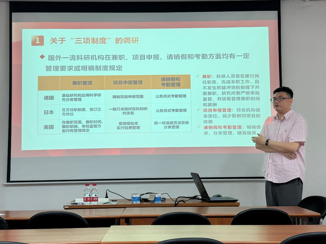 在本次专题党课中,副所长兼党委副书记李昂同志立足国家战略科技力量使命,结合抢占科技制高点的核心任务,系统推进“兼职管理、项目申报、请销假与考勤”三项制度规范化建设,为科研工作高质量发展筑牢纪律根基。