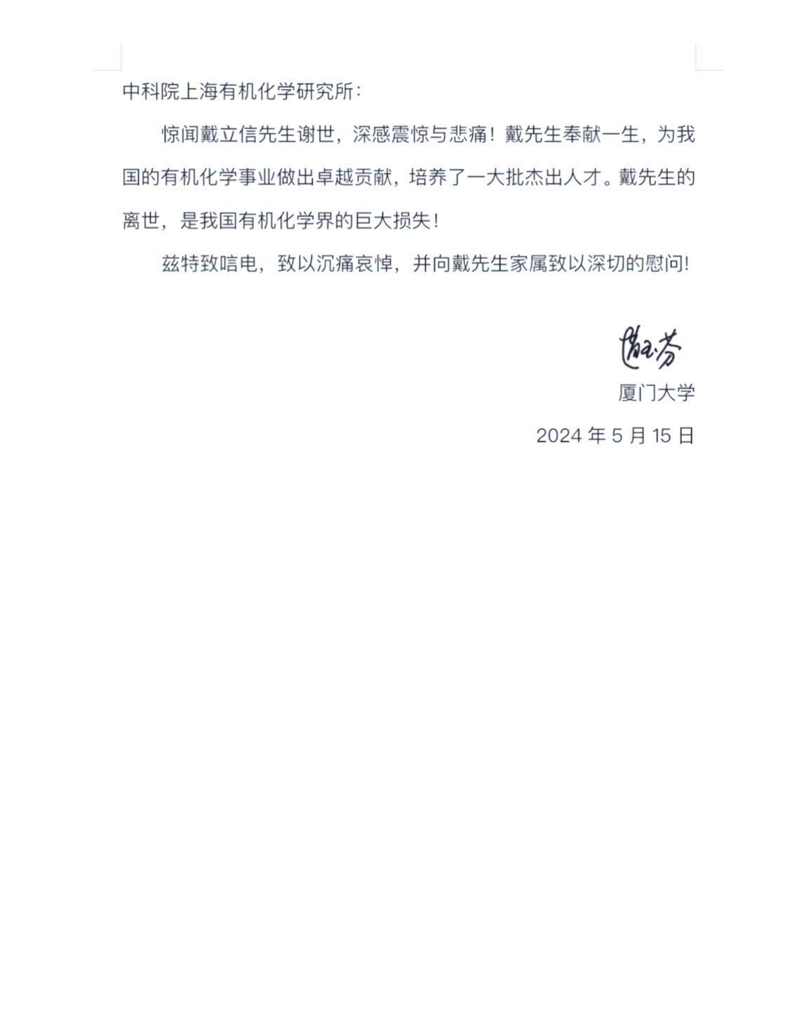 赵玉芬院士唁电