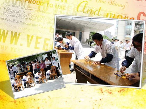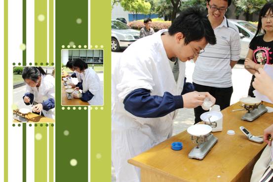 2009年5月19日中午,在新实验楼门口举行了一场别开生面的基本实验技能趣味团体赛,比赛设计了穿实验服+辨别化学试剂+写实验方程式(或回答安全试验类问题)+准确称量石英砂,四个环节,以各个实验室为单位,通过团体接力的方式进行。本次比赛增进青年科研人员的团队合作意识及安全试验意识。最后名次为:第一名:金属有机,第二名:氟化学,第三名:研一。