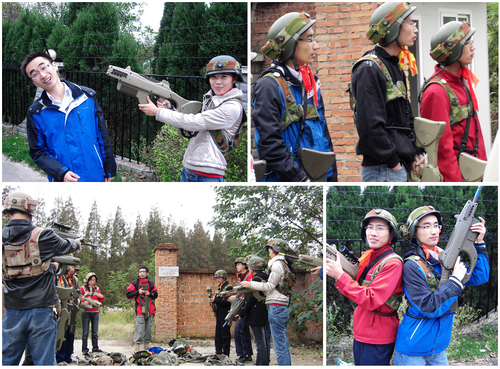 定向越野是利用地图和指北针等物品寻找组织者在大自然中预先设置的一定数量的检查点,以速度最快者为优胜的一种户外体育运动。团员们分为4个小组,每个小组都齐心合力,互帮互助,按照各自的路线寻找点标,最终都完成了大部分的目标。真人CS也是一项讲求团队协作与配合,集运动与游戏于一体,紧张刺激的娱乐活动。大家互相配合、掩护,制定进攻战略。充分体会到了协作的重要性和快乐!