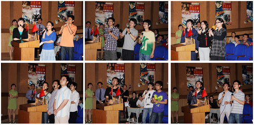 经过激烈地角逐,最后机关、学报团支部选送的《风声》获一等奖,研一团支部选送的《洪湖赤卫队》,现代、高分子团支部选送的《鬼子来了》获二等奖,氟化学团支部选送的《抓壮丁》、研一团支部选送的《上甘岭》、《举起手来》获三等奖。机关的章云帆获个人最佳配音奖。
