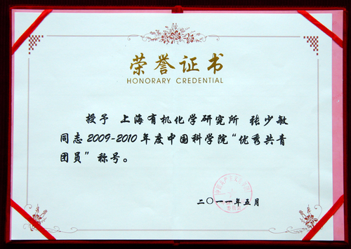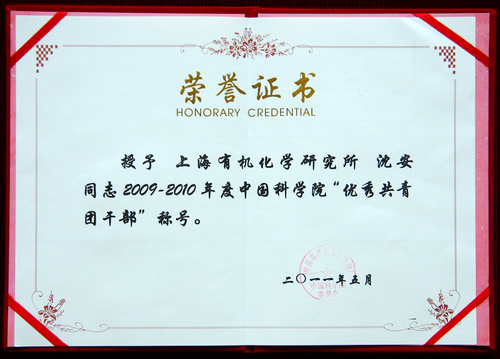 我所现代、高分子团支部书记:沈安同志荣获“中科院优秀共青团干部”称号;生命有机室团员张少敏同志荣获“中科院优秀共青团员”称号。