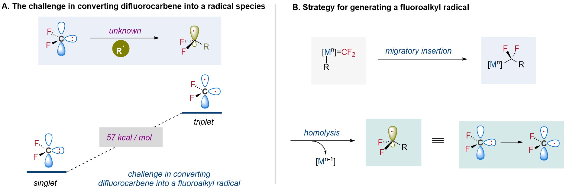 图1 二氟卡宾成为氟碳自由基的挑战及策略