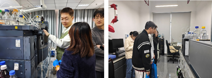 除了集中授课,本次培训班还灵活穿插了仪器观摩、现场交流等形式多样的学习模式。上海有机所质谱中心展示了在线化学衍生装置、DART-傅立叶交换离子回旋共振质谱仪、线性离子阱静电场轨道阱组合式质谱仪等仪器的操作过程,并进行了现场答疑。