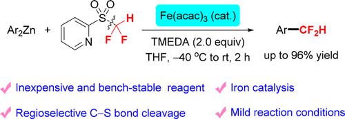 Iron-Catalyzed Difluoromethylation of Arylzincs with Difluoromethyl 2-Pyridyl Sulfone