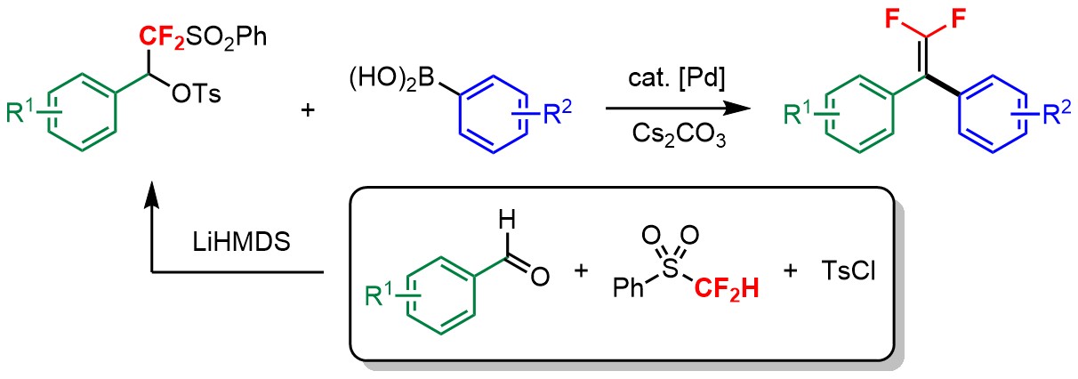 Synthesis of 2,2-Diaryl-1,1-difluoroethenes via Pd-Catalyzed Dehydrosulfonylative Cross-Coupling of α-[Difluoro(phenylsulfonyl)methyl]benzyl Tosylates with Arylboronic Acids