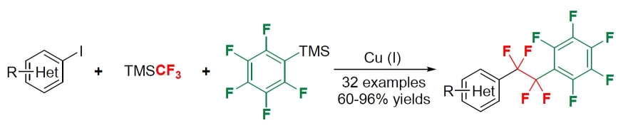 Controllable Double CF2-Insertion into sp2 C-Cu Bond Using TMSCF3: A Facile Access to Tetrafluoroethylene-Bridged Structures  Xie, Qiqiang; Zhu, Ziyue; Li, Lingchun; Ni, Chuanfa; Hu, Jinbo* Chemical Science 2019, Published online, DOI: 10.1039/C9SC05018C. (Featured by Chemistry World, 5, Dec. 2019)