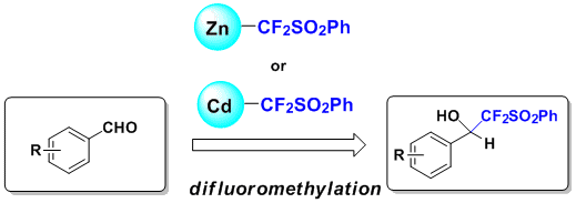 Efficient Nucleophilic Difluoromethylation of Aldehydes with (Phenylsulfonyl)difluoromethylzinc and (Phenylsulfonyl)difluoromethylcadmium Reagents  Jiang, Fanzhou; Ni, Chuanfa; Hu, Jinbo* Journal of Fluorine Chemistry, 2016, Early View, DOI: 10.1016/j.jfluchem.2016.12.005. (Invited contribution for a special issue on Bremen Fluorine Days) |