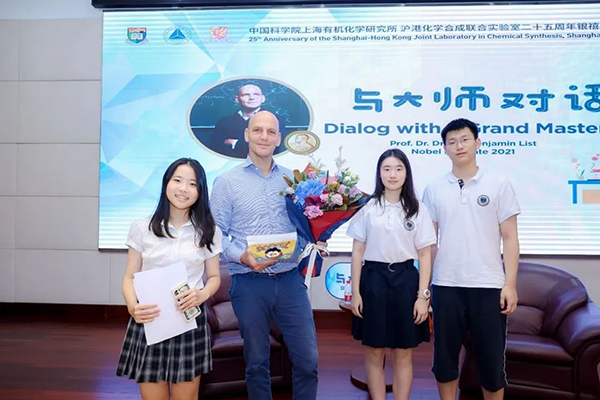 值此银禧庆典之际,应沪港联合实验室管理委员会主任黄乃正院士邀请,2021年诺贝尔化学奖得主Benjamin List教授做客上海有机所,与来自上海中学国际部、上海市世外中学、上海市西南位育中学、上海民办位育中学、上海科技大学附属学校、上海尚师初级中学、上海哈罗外籍人员子女学校等学校的300余名初、高中学生进行了面对面对话活动。