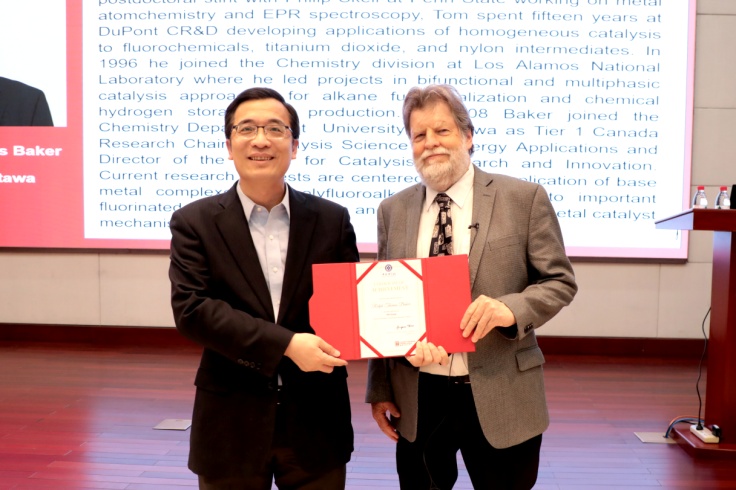 2024年5月7日下午,加拿大渥太华大学Ralph Tomas Baker教授受邀访问上海有机所,并作题为“Fluorometallacycles Built for Two: Understanding Formation Mechanism and Reactivity”的学术报告。报告由张新刚研究员主持,胡金波研究员为Baker教授颁发中国科学院国际交流计划(PIFI)杰出团队荣誉证书。