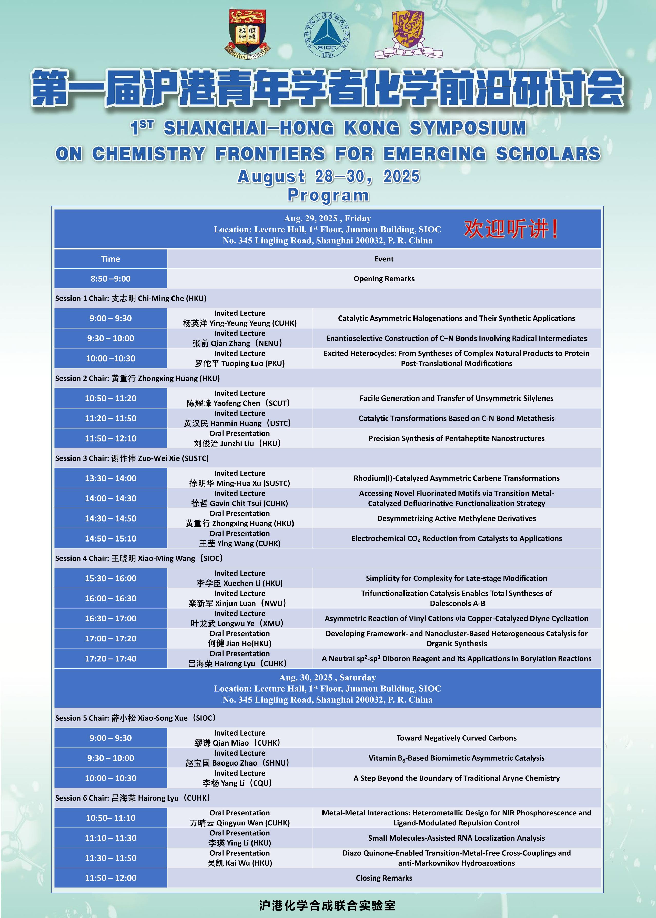 1ST SHANGHAI-HONG KONG SYMPOSIUM ON CHEMISTRY FRONTIERS FOR EMERGING SCHOLARS第一届沪港青年学者化学前沿论坛