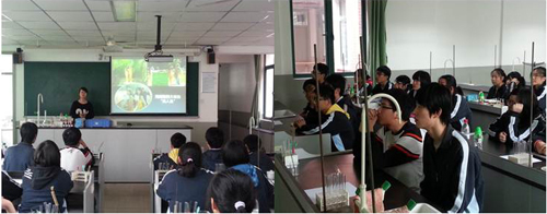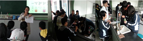 接下来的实验环节,由王守国和吴文挺指导,同学们自己动手做实验。除了检测事先准备的矿泉水,自来水外,还饶有兴趣地检测起自己所带的水或者饮料。看到明显的实验变化后,同学们兴奋不已,甚至不顾下课的铃声,依旧沉浸在实验所带来的快乐与惊喜中。