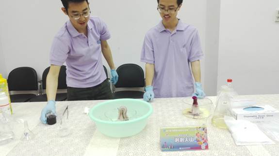 当然,对青少年学生来说,吸引他们的永远是有显著颜色变化的实验,如 “靓丽的帅哥铁”,“ 红玫瑰蓝玫瑰”以及“魔壶实验”。这些实验具有直观的视觉效果,丰富的颜色变化。