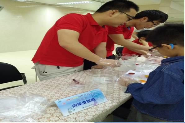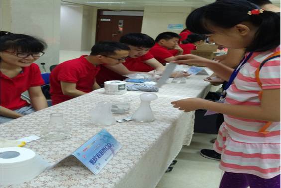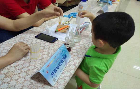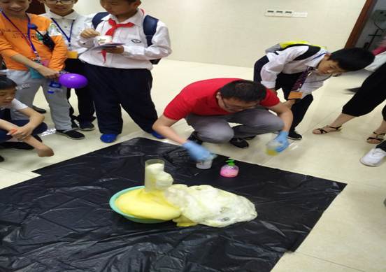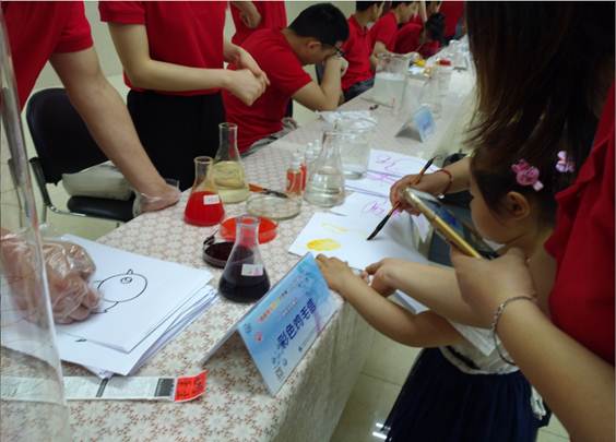 多个实验多次补充实验原料后,很多同学们仍然是意犹未尽。9个小实验中具有氟化学特色实验,又有大家可以亲自操作的实验,让参观者真正感受化学的美妙。展厅内气氛活跃热烈,参观者乐于询问,在满足他们的好奇心时,志愿者们以通俗的语言讲解其中的原因,增加他们对化学的兴趣,实现了良好的互动。活动结束时小朋友们依依不舍相约明年再见。