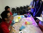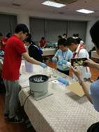 我们天然产物有机合成化学重点实验室为小朋友们精心准备了丰富多彩的科普趣味化学小实验。这些实验,既有不同价态铁离子产生的溶液颜色变化(趣味实验1:靓丽的帅哥铁);有绿色的菠菜浆经过有机溶剂层析后,得到四个不同颜色的色素带,证明在看起来只是绿色的菠菜叶色素中其实存在有多个不同的色素物质(趣味实验2:菠菜色素的提取与纸层析分离);有不同温度下的氯化钴颜色变化(趣味实验3:红玫瑰蓝玫瑰);有化合态的银离子经过氧化还原反应,最终析出在试管壁上(趣味实验4:葡萄糖的银镜反应);其他的趣味实验还有泡泡火山、火龙写字、指纹检测等。这些趣味实验包含了丰富的化学知识原理,而我们通过浅显易懂而绚烂多彩的方式展示出来,在我们志愿者的耐心指导下,小朋友们先仔细观摩,然后亲身操作,渐渐被化学实验的奇妙所吸引。