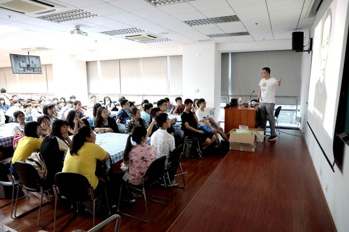 7月6日,60多名台湾青少年来到上海有机所,科普小分队的蔡毓娟、葛航铭、陈金凤在君谋楼第一教室给他们上了一堂充满乐趣的化学实验课。
