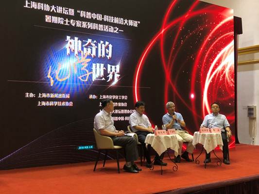 本次科普讲坛的主题为“神奇的化学世界”,主持嘉宾是来自上海化工研究院的徐大刚教授,对话嘉宾是来自华东理工大学的刘洪来教授及中国科学院上海有机化学研究所的黄正研究员。