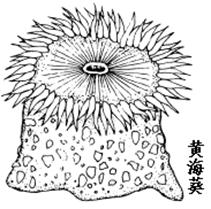 黄海葵体态多变,伸展时呈圆筒形;收缩时呈左右对称的相合状,体高30-90mm,体宽30-70mm,多数为中等大小。体的顶端为口盘,其上有放射条纹和环纹构成的图案,口盘底色为深浅不一的灰白色和青褐色。口位于口盘中央,呈裂缝状,周围有浅粉红色的口唇。口盘边缘环生数圈触手,触手细长可伸缩,呈浅褐色,有的为粉红色,排列整齐,按12的倍数排列,总数为96根,长度约等于口盘直径,各触手长度略相等。触手向口面有白斑;反口面的基部有灰白色结节约20个。体色变异较大,上部为灰褐色或灰绿色,下部为黄褐色或肉色。体壁上有疣状吸盘,上部比下部多,下部近平滑,吸盘上常吸有小沙或碎壳。体常埋于沙中,下端有圆形足盘,固着于沿海高潮线岩石上或残水坑沙中石上。当退潮时,触手伸展如菊花状,若遇惊动即缩于泥沙中。为极普通的种类。我国分布于黄海、渤海、东海。
