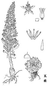 瓦松为景天科植物瓦松、晚红瓦松、钝叶瓦松及黄花瓦松的全部。