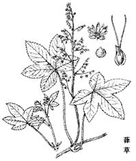 一年生或多年生蔓性草本。茎长达数米,淡绿色,有纵条棱,茎枝和叶柄上密生短倒向钩刺。单叶对生;叶柄长5-20cm,稍有6条棱,有倒向短钩刺;掌状叶5-7深裂,直径约5-15cm,裂片卵形或卵状披针形,先端急尖或渐尖,边缘有锯齿,上面有粗刚毛,下面有细油点,脉上有硬毛。花单性,雌雄异株;雄花序为圆锥花序,雌花序为短穗状花序;雄花小,具花被片5,黄绿色,雄蕊5,花丝丝状,短小;雌花每2朵具1苞片,苞片卵状披针形,被白色刺毛和黄色小腺点,花被片1,灰白色,紧包雌蕊,子房单一,上部突起,疏生细毛。果穗绿色,近球形;瘦果淡黄色,扁球形。花期6-10月,果期8-11月。 |