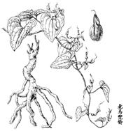 1.北马兜铃是草质藤本。叶纸质;叶柄柔弱,长2-7cm;叶片卵状心形或三角状心形,长3-13cm,宽3-10cm,先端短尖或钝,基部心形,两侧裂片圆形,下垂或扩展,边全缘;基出脉5-7条。总状花序有花2-8朵生于叶腋;花序梗和花序轴极短或近无;花梗长1-2cm,小苞片卵形,具长柄;花被长2-3cm,基部膨大呈球形,向上收狭呈一长管,内面具腺体状毛,管口扩大呈漏斗状;檐部一侧极短,有时边缘下翻或稍2裂,另一侧渐扩大成舌片;舌片卵状披针形,先端长渐尖具延伸成1-3cm线形而弯扭的尾尖,黄绿色,常具紫色纵脉和网纹;花药贴生于合蕊柱近基部;子房圆柱形,6棱;合蕊柱先端6裂,裂片向下延伸成波状圆环。蒴果宽倒卵形或椭圆状倒卵形,长3-6.5cm,先端圆形而微凹,6棱,成熟时由基部向上6瓣开裂;果梗下垂,随果开裂。种子三角状心形,扁平,有小疣点,具浅褐色膜质翅。花期5-7月,果期8-10月。