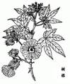 4.树棉是多年生亚灌木至灌木,高达3m。叶掌状5深裂,裂片长圆状披针形。小苞片3,基部合生,三角形,长超过于宽,近截形。蒴果圆锥形,向先端渐狭,长达3cm。花期6-9月。