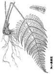 阔鳞鳞毛蕨的植株高50-90cm。根茎斜升,密被深棕色或栗黑色、披针形鳞片。叶簇生;叶柄长25-50cm,深禾秆色,密被棕色阔披外地形鳞片;叶片片椭圆形,长与叶柄几相等,宽20-30cm,顶部长渐尖,沿叶轴、羽轴有棕色、卵状披针形鳞片,二回羽状或三回羽裂;羽片披针形,基部的长10-18cm,宽3-4cm,长渐尖头;小羽片椭圆状披针形,先端钝,基部呈明显耳形,边缘浅裂或有疏钝齿;侧脉羽状分叉。孢子囊群生于小脉中部;囊群盖圆肾形。 |