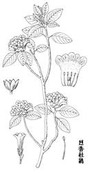 烈香杜鹃是常绿小灌木,高50-120cm。多分枝,幼枝淡绿色,密生鳞片和柔毛,老枝灰黄褐色或灰色。单叶互生;叶柄长3-7mm,疏被腺鳞;叶片软革质,卵状椭圆形,长2-4.5cm,宽1.2-2.5cm,先端钝,具短尖,基部宽楔形,全缘,边缘略反卷。表面淡绿色,光滑,背面黄绿色,密生棕色腺鳞。伞房状花序半球形,花密集,顶生有10余朵花,有强烈香气,花梗及花萼外面无鳞片;花萼大,长4mm,5深裂,裂片宽长圆形,边缘有长睫毛;花冠黄色或淡黄绿色,近杯状,5浅裂,裂片长1.2mm,外面光滑,无毛,里面密生柔毛;雄蕊5,朱红色,不外露,花丝具柔毛;子房阔卵形,密被鳞片,花柱粗短,红褐色,柱头头状。蒴果卵形。花期6-8月,果期7-9月。 |