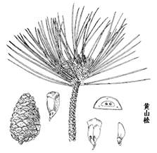 2.黄山松与华山松的区别在于:松叶长7-10(13)cm,2针一束,微粗硬,边缘有细齿,树脂道中生。球果卵圆形或圆卵形,长3-5cm,径3-4cm,熟时褐色或暗褐色,近无梗,宿存树上,多年不落;鳞盾扁菱形,横脊显著,鳞脐具短刺。花期4-5月,球果翌年10月成熟。