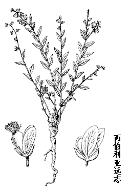 2.西伯利亚远志是多年生草本,高10-30cm。根圆柱形。茎多分枝,被短柔毛。单叶互生,具短柄;叶纸质至近革质,下部叶小,卵形,长约6mm,宽约4mm,先端钝,具短尖头;上部叶大,披针形或椭圆状披针形,长1-2cm,宽3-6cm,绿色,被短柔毛,先端钝,具骨质短尖头,基部楔形,全缘,反卷,主脉在上表面下陷,背面隆起,侧脉不明显。总状花序腋外生或假顶生,通常高出茎顶,具少数花,被短柔毛;花长约6-10mm,具小苞片3枚,钻状披针形,长约2mm,被短柔毛;萼片5,宿存,外面3枚小,披针形,长约3mm,里面2枚大,花瓣状,长约7mm;花瓣3,蓝紫色,侧生花瓣倒卵形,长5-6mm,基部与龙骨瓣合生,龙骨瓣较侧生花瓣长,背面被柔毛,先端背部具流苏状鸡冠状附属物;雄蕊8,花丝长5-6mm,2/3以下合生成鞘,鞘具缘毛,花药卵形,顶孔开裂;子房倒卵形,直径约2mm,先端具缘毛,花柱肥厚,先端弯曲,长约5mm,柱头2,间隔位于花柱先端。蒴果近倒心形,直径约5mm,先端微缺,具狭翅,疏被短柔毛。种子黑色,除种阜外,被白色柔毛。花期4-7月,果期5-8月。