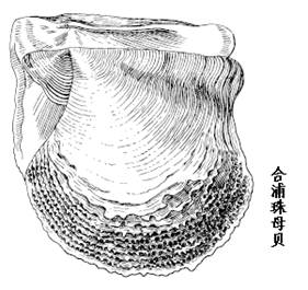 3.合浦珠母贝的贝壳为斜四方形,壳质较脆,壳长50-90mm,宽18-32mm,高与长相近,较大个体高可达100mm以上。壳顶位于前方,两侧有耳,前耳较后耳稍小。两壳不等,右壳较平,左壳稍凸,右壳前耳下方有一明显的足丝凹陷。背缘平直;腹缘圆,壳面淡黄褐色,同心生长轮脉极细密,成片状,薄脆易脱落,壳中部常呈磨损状,近腹缘的排列紧密,延伸成小舌状,末端稍翘起,足丝孔大,足丝呈毛发状。壳内面中部珍珠层厚而发达,具极强的珍珠光泽。有的外套膜受刺激后,上皮组织急剧裂殖,形成珍珠囊,且不断分泌珍珠质,才逐渐形成珍珠。壳内面边缘淡黄色,无珍珠层。铰合线直,有一突起主齿,沿铰合线下方有一长齿片。韧带紫褐色,前上掣肌痕明显,位于壳顶下方,闭壳肌痕大,长圆形,前端稍尖,位于壳中央稍近后方。