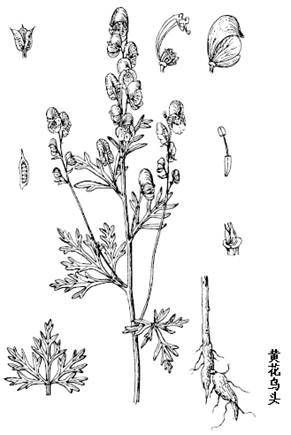 化合物成分:关附素(guanfubase)A、B、C、D、E、F、G、H、I、Z,次乌头碱(hypaconitine),β-谷甾醇(β-sitosterol),油酸(oleic acid),亚油酸(linoleic acid),棕榈酸(palmitic acid)和24-乙基胆甾醇(24-ethylcholesterol)。