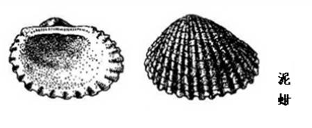 2、泥蚶的贝壳呈卵圆形,极坚厚,壳长43mm左右,高36mm左右,两壳相当膨胀,宽度略小于高度。两壳顶间的距离较远,壳表放射肋发达,共18-21条,肋上具有极显著的断续颗粒状结节,此结节在壳边缘部分不甚明显,壳内面灰白色,边缘具有与壳面放射肋相应的深沟。铰合部直,铰合齿约40个。前闭壳肌痕较小,呈三角形;后闭壳肌痕大,近方形。