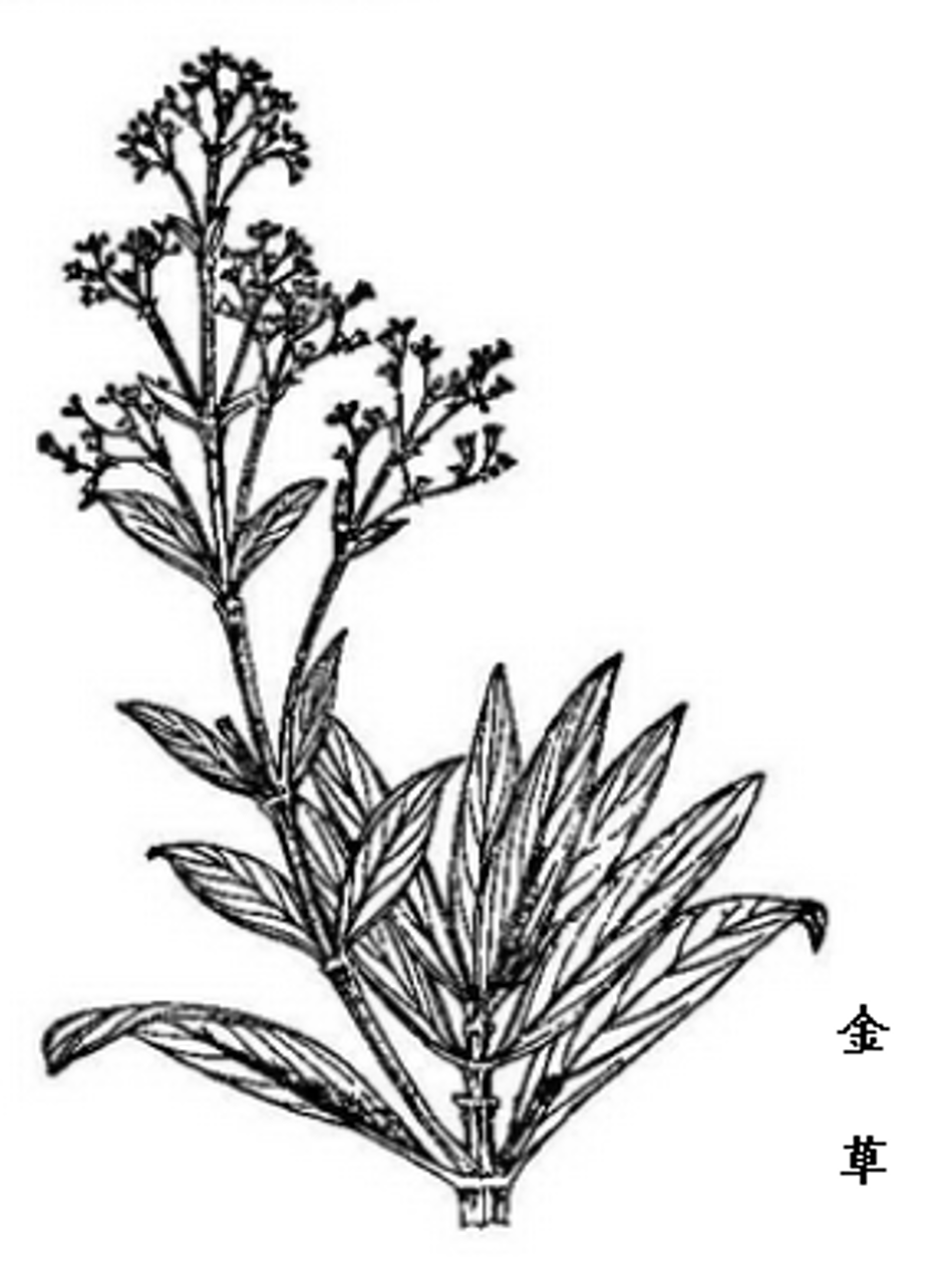 金草属灌木状草本,高25-60cm。基部木质;茎几乎不分枝,锐四棱柱形或具翅。叶对生;近无柄;叶片革质,卵状披针形或披针形,长5-12cm,宽1.5-2.5cm,先端急尖或长渐尖,基部圆或楔形,两面无毛,聚伞花序顶生,常为圆锥花序式或近伞房花序状排列,分枝具棱或翅;苞片披针形,广展;无花梗;萼筒陀螺状,长约1mm,顶部4裂,裂片卵形,短于萼筒;花冠白色,筒状,长约4mm,喉部稍扩大,先端4裂,裂片披针形;雄蕊生于花冠管喉部,内藏;花柱与花冠近等长,柱头2裂,粗糙。蒴果倒卵形,长2-2.5mm,径1-1.2mm,先端平或微凸起,具宿存萼裂片,两瓣开裂。种子数枚,近椭圆形,有棱。花期夏未秋初。