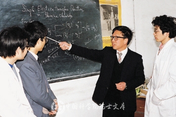 1990年,陈庆云(右2)与研究生讨论学术问题