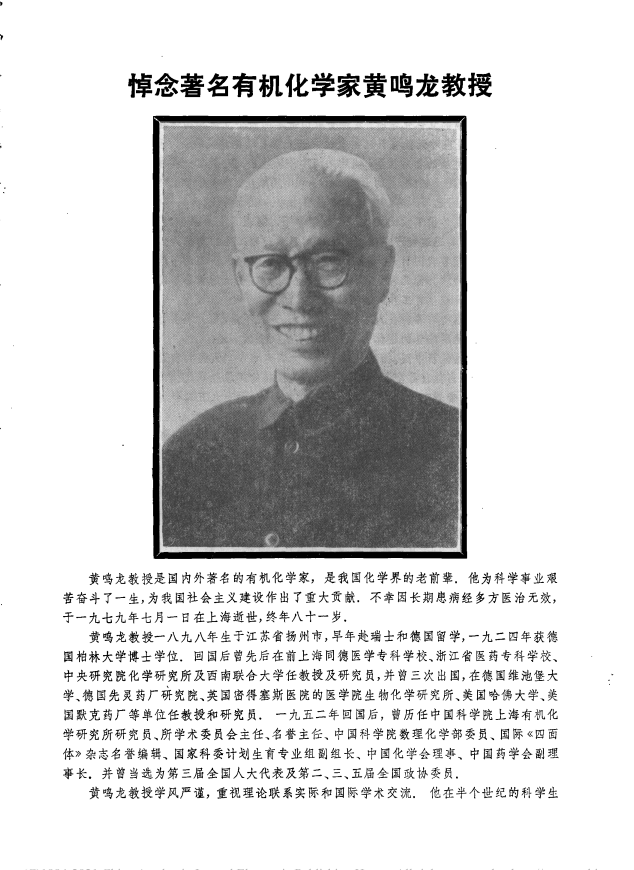 悼念著名有机化学家黄鸣龙教授_