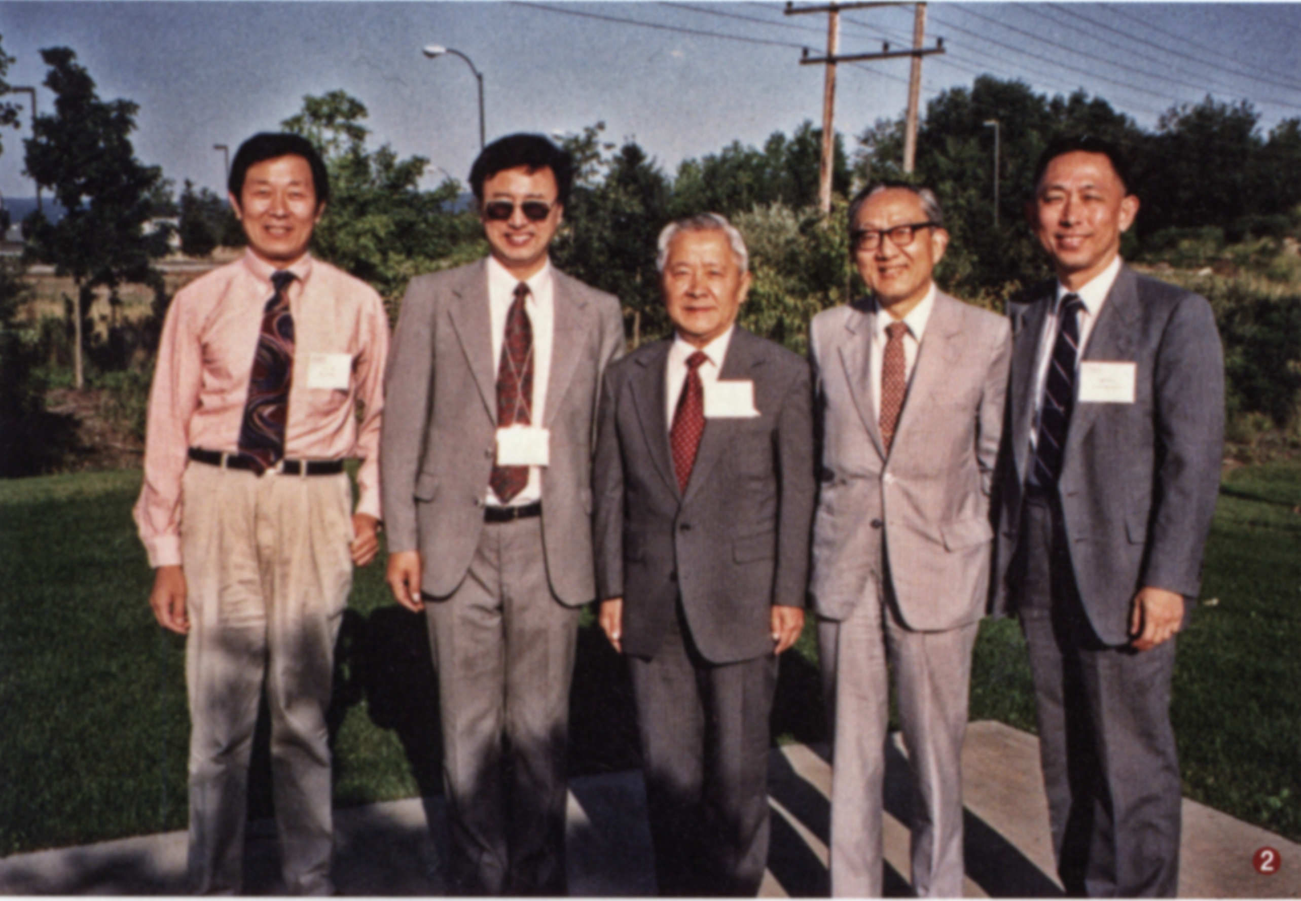 国际物理有机化学会议(以色列)期间与刘有成院士(中)、程津培院士(左1)、计国桢教授(左2)和台湾大学刘广定教授(右1)合影